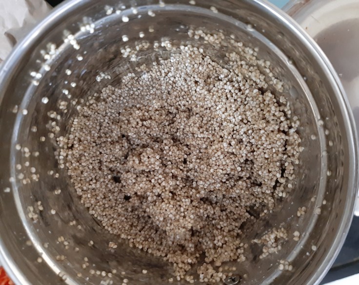 Then soak Quinoa in warm water for 2-3 hours. (If you are planning to make in the morning, then soak it for overnight).