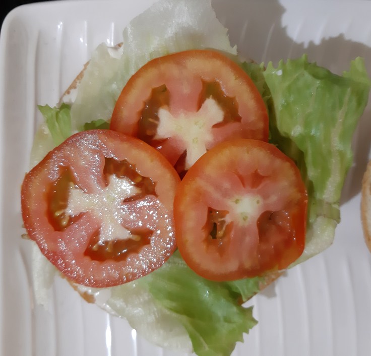 Then lay some lettuce on it followed by tomatoes, patty, cheese and covered with Ketchup spread bun on it.