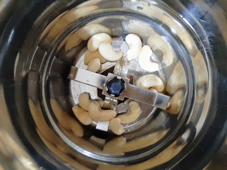 Blend cashew nuts in the blender.