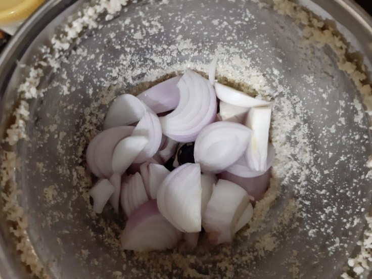 Add onions to the same mixing bowl and grind it.