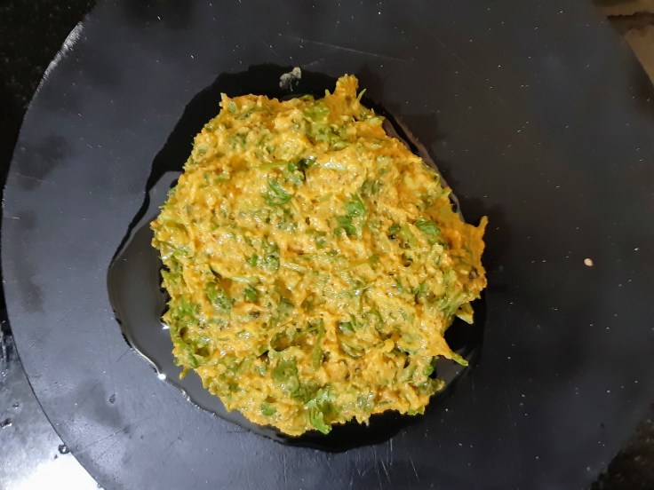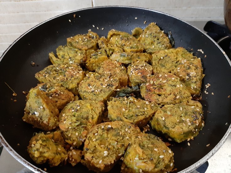 Later add all steamed Kothimbir vadi to it and roast it till it gets red from both the sides.