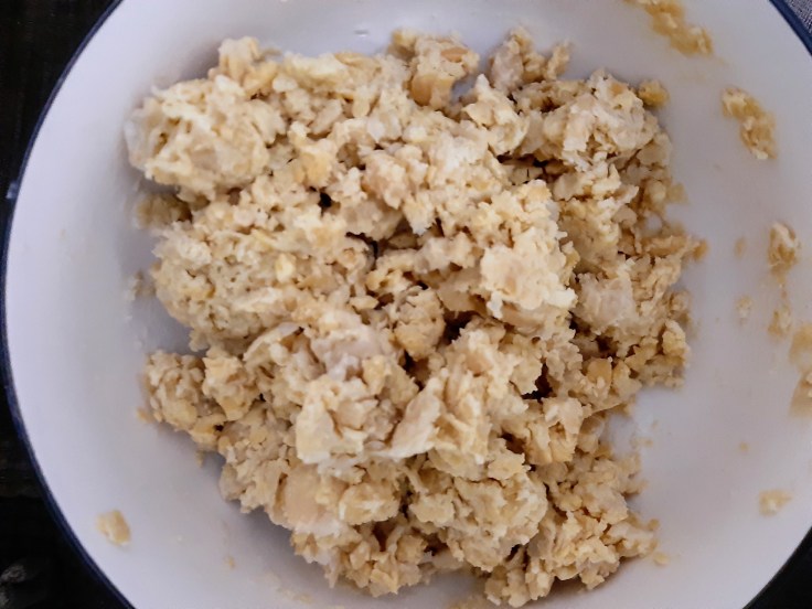 Mash the chickpeas with a back of the spoon or masher to get a potato mash like consistency.