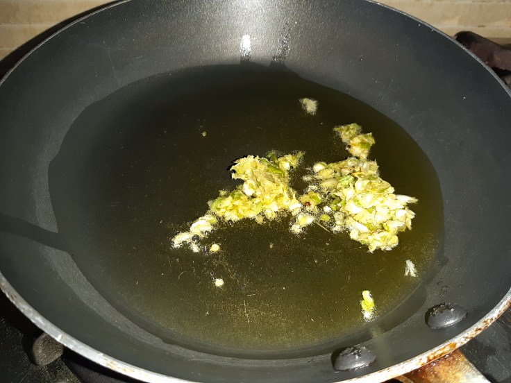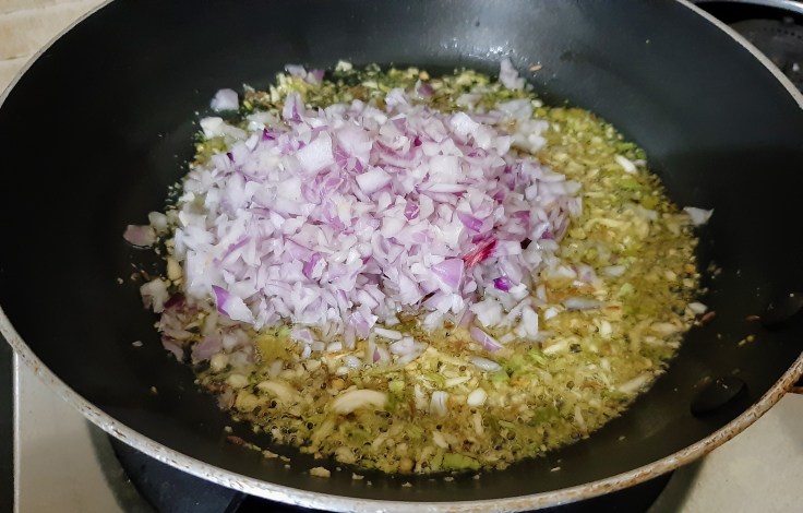 Take clarified butter(Ghee) in a pan and add green chili, ginger and garlic paste. Sauté it without burning them.