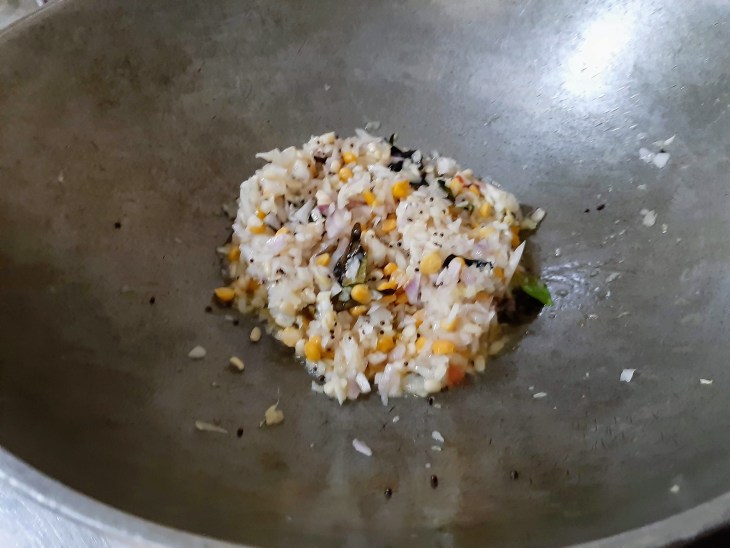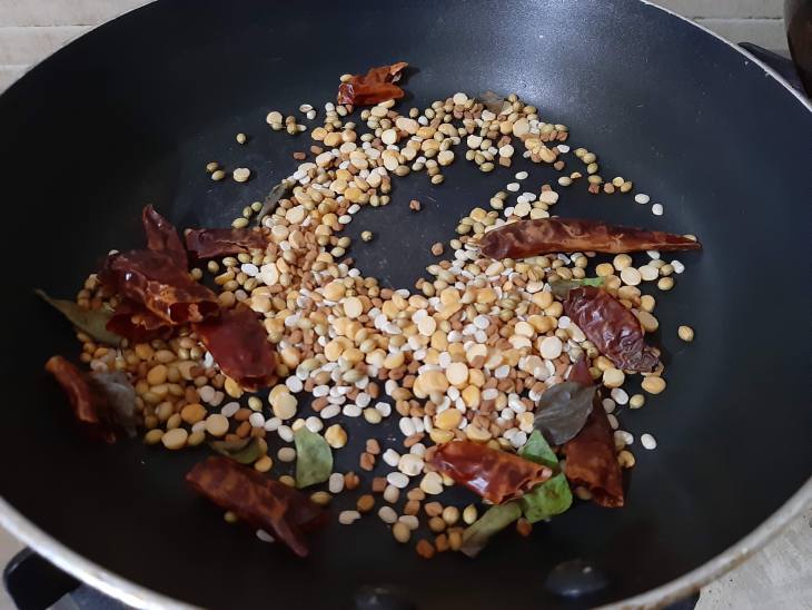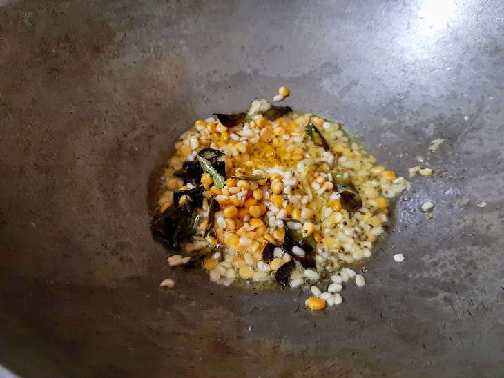 Then add Black split gram, Bengal gram lentils and sauté them.