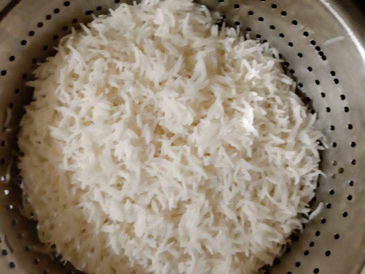 Take rice in a bowl, wash it twice with fresh water and soaked it for at least 15-30 minutes before cooking it. It should be parboiled and not overcooked otherwise it would become sticky.