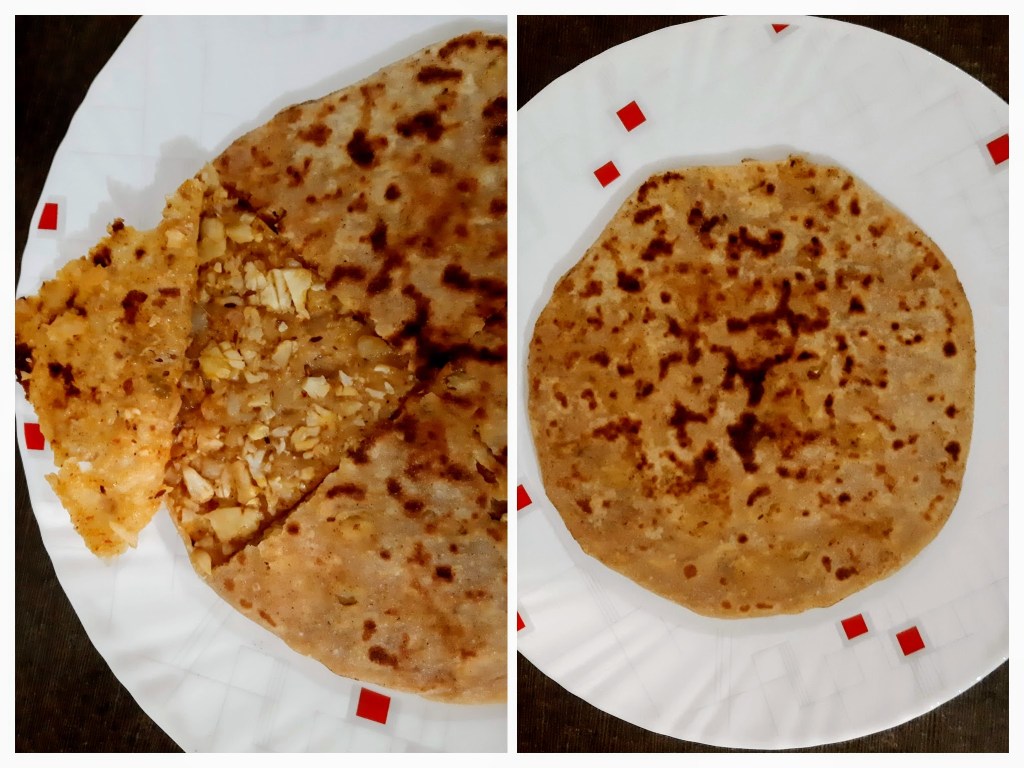 Transfer it to the pan and cook until you get light brown spots on the other side of the paratha.