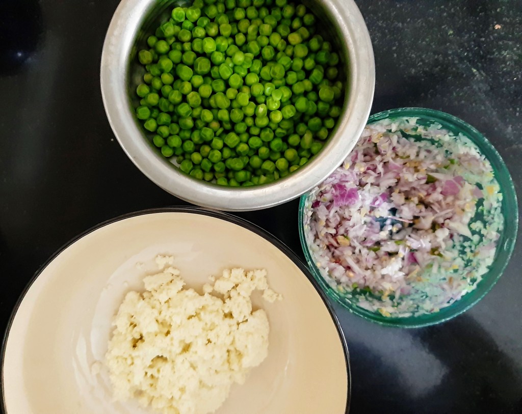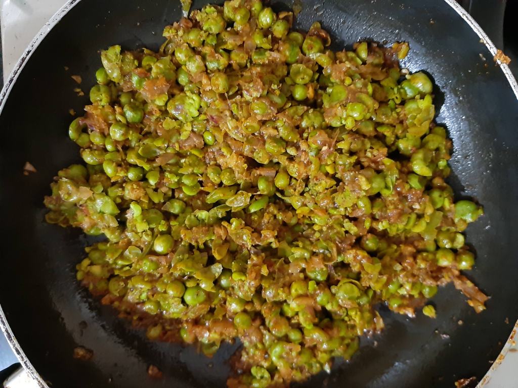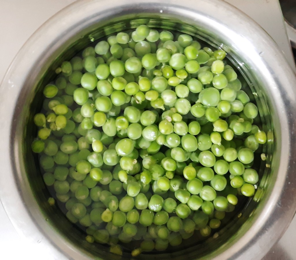 Press a few peas to know if it is done. Drain water off the peas and keep it aside.