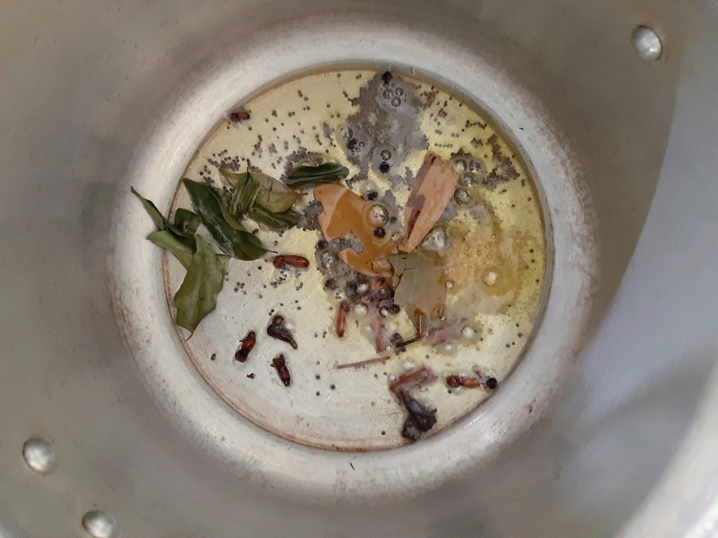 Add mustard seeds, curry leaves, asafetida, and all spices into it. Sauté it and let the aroma of spices infused into it.