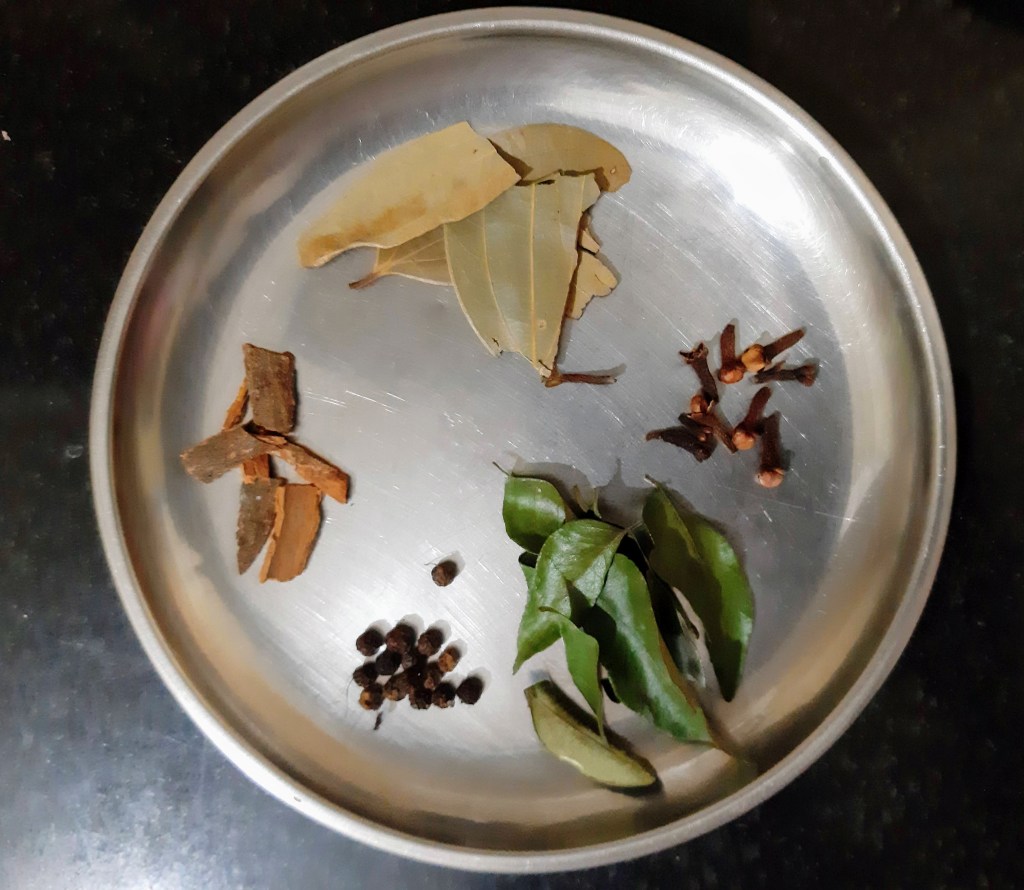 Take a pressure cooker with 2 tbsp ghee and 1 tbsp oil in it. Let it heat at a low flame.