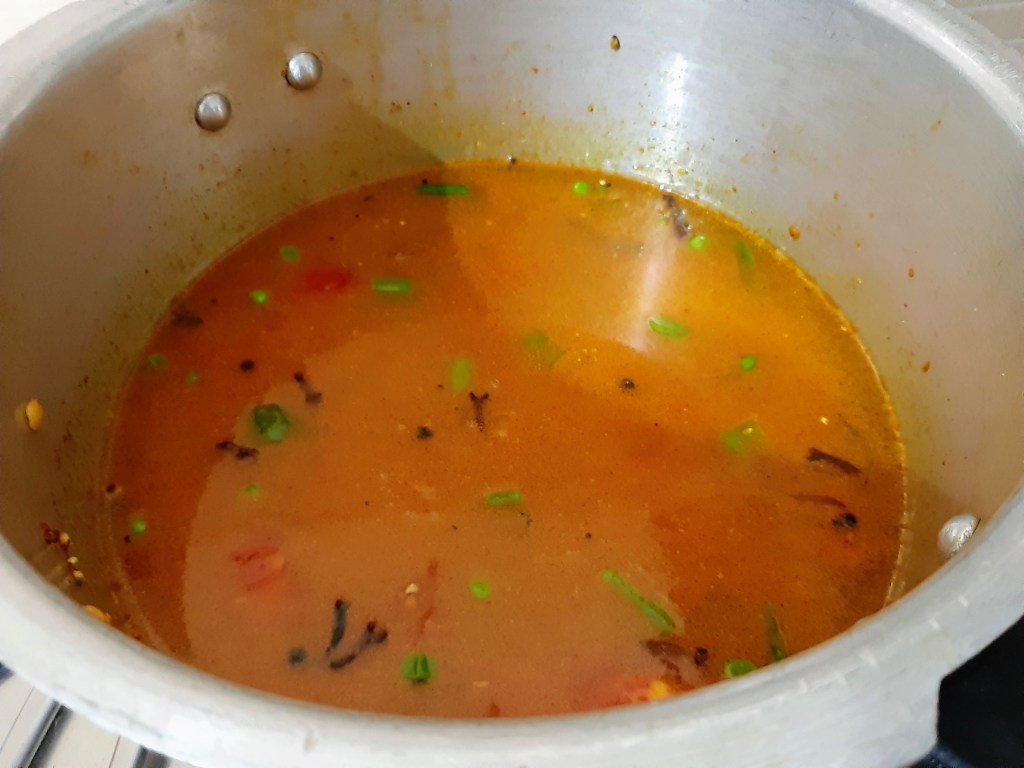 Cover the pressure cooker and turn the flame to medium. Pressure cook the khichdi for 6-7 whistles.