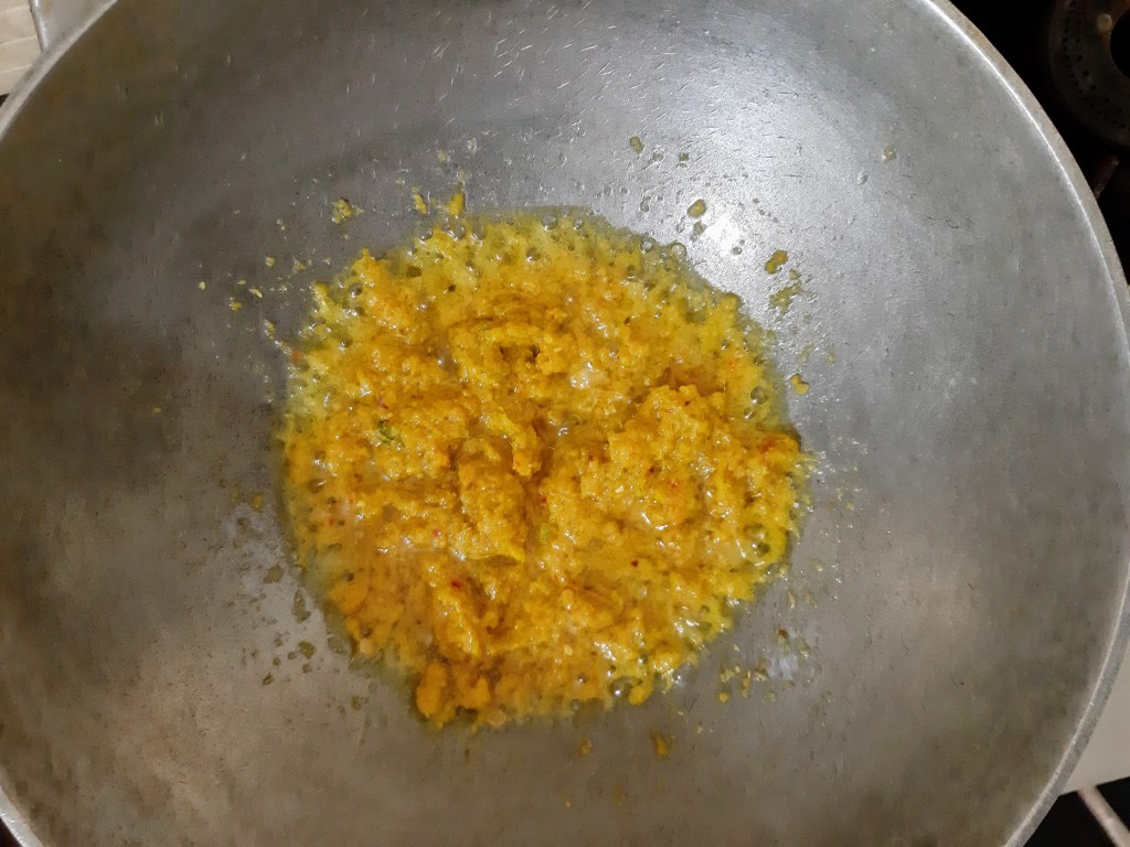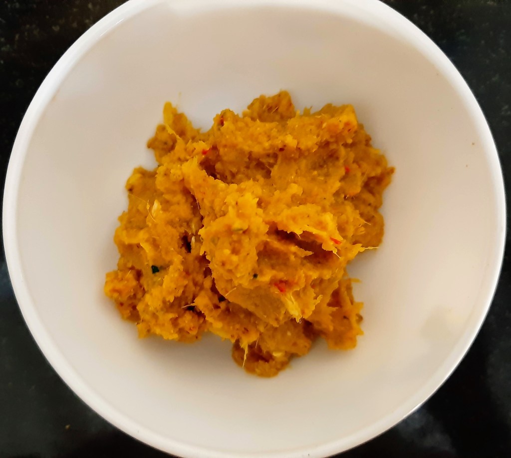 In this recipe, I have given a twist by adding all fresh ingredients such as raw turmeric, coriander seeds and redbird eye chili. The paste is strong in flavors with all pungent ingredients which then blends with sweet coconut milk, making it a subtle, sweet and tangy delectable dish. The sprinkle of condiments above it is bang on. It adds crunchiness and accentuates its appearance and taste.