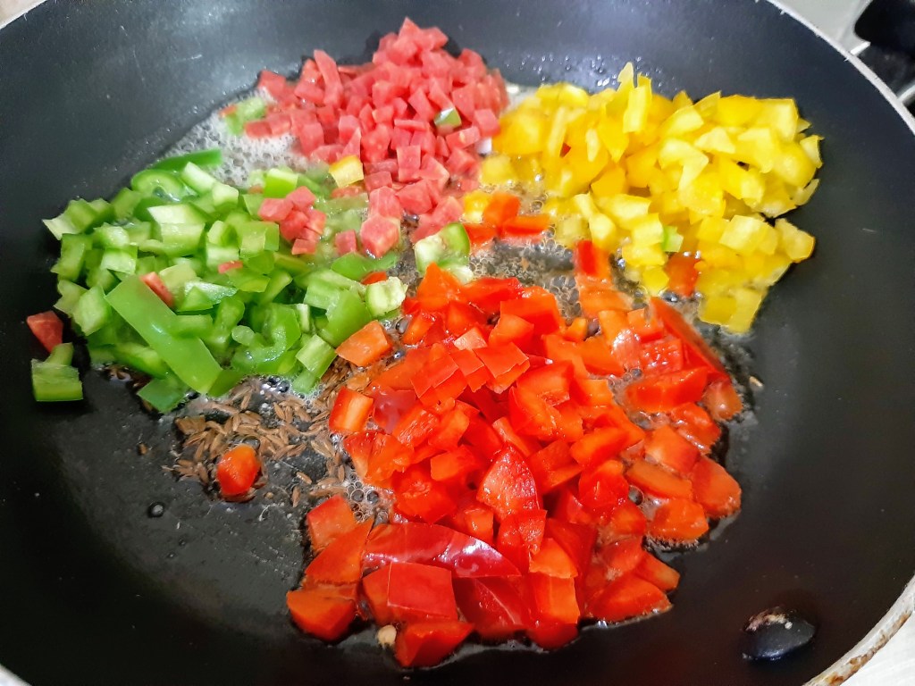 Then add all chopped vegetables, sprinkle salt as per taste and give a toss.