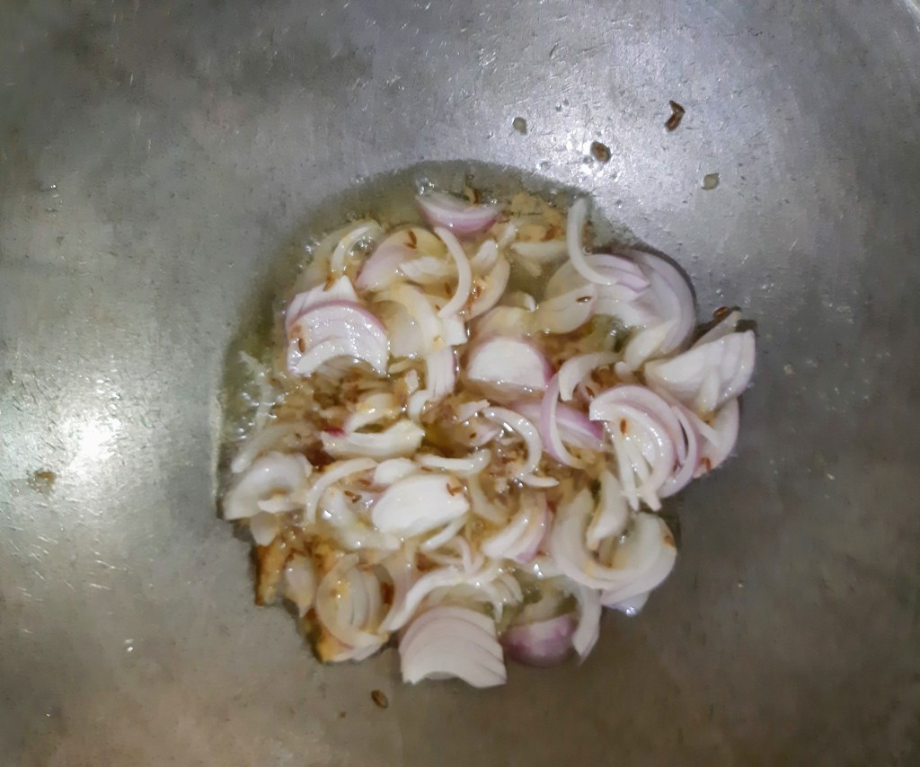 Add onions and ginger-garlic paste in heated oil. Stir it well and let it cook till onions turn translucent.