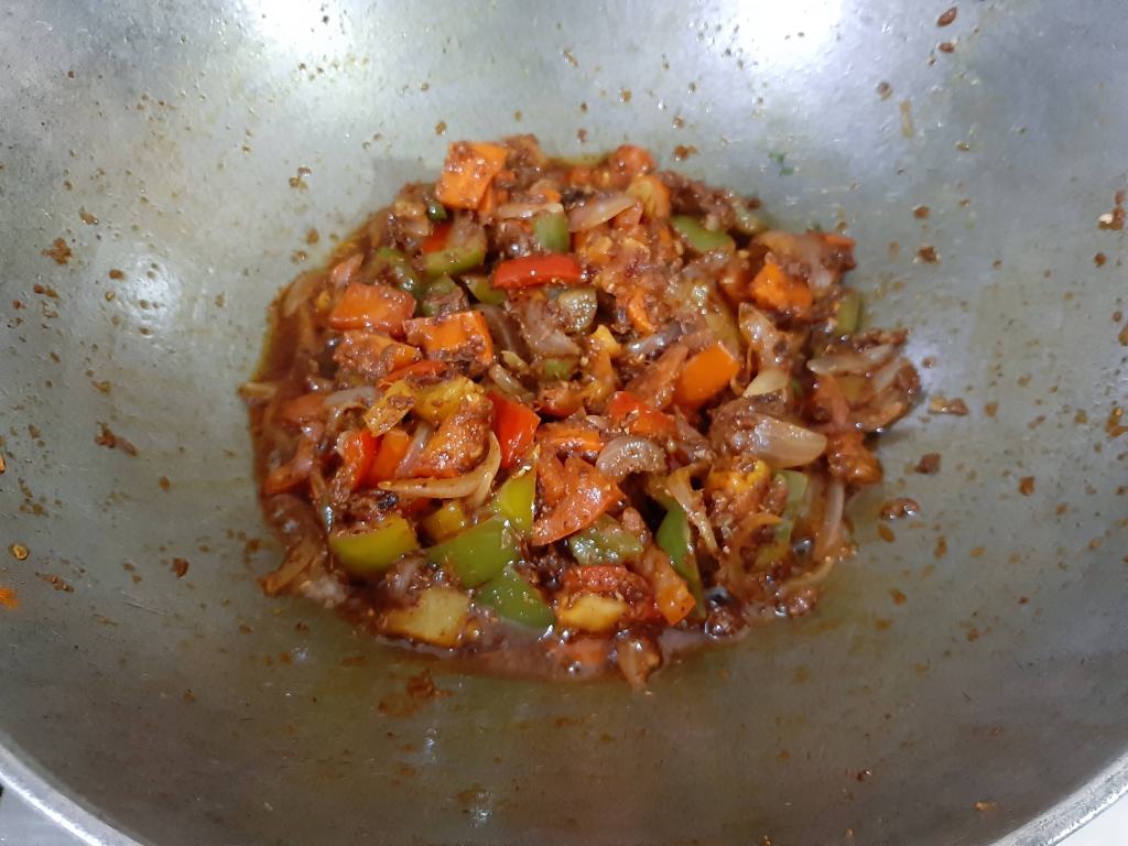 Stir veggies, cover the lid and let it cook for 3-4 minutes. It should not be over-cooked.