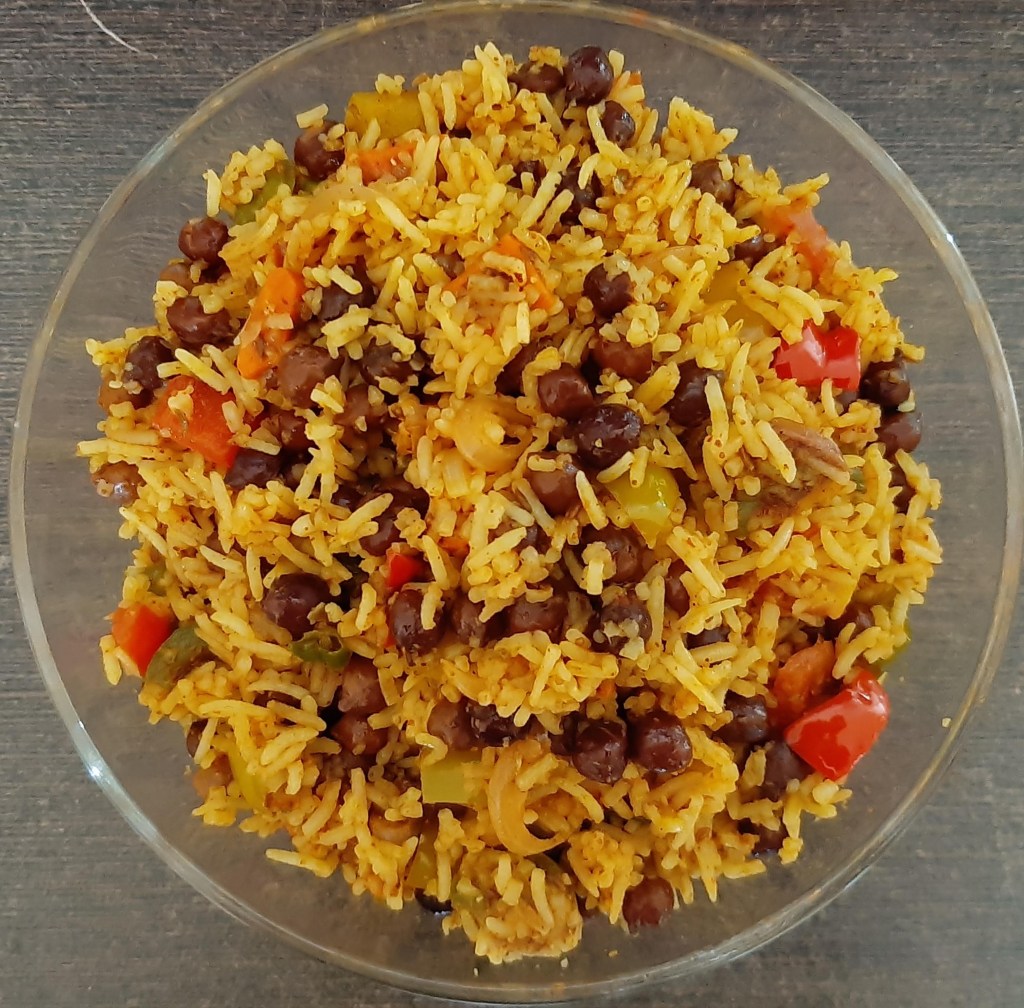 It is made with boiled black chana, rice, vegetables and Indian spices. I have used only bell peppers and carrots, but you can add any vegetables as per your taste.