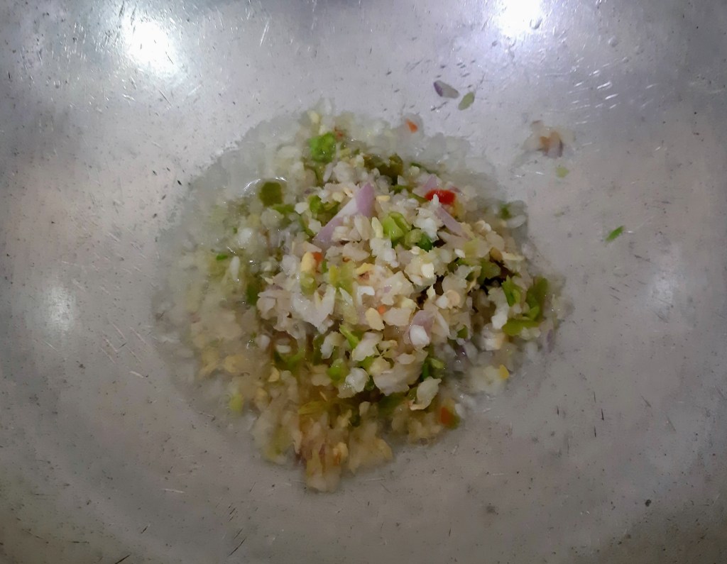 Mix all elements using your hand and gradually adding water, knead it to get a non-sticky and soft dough.