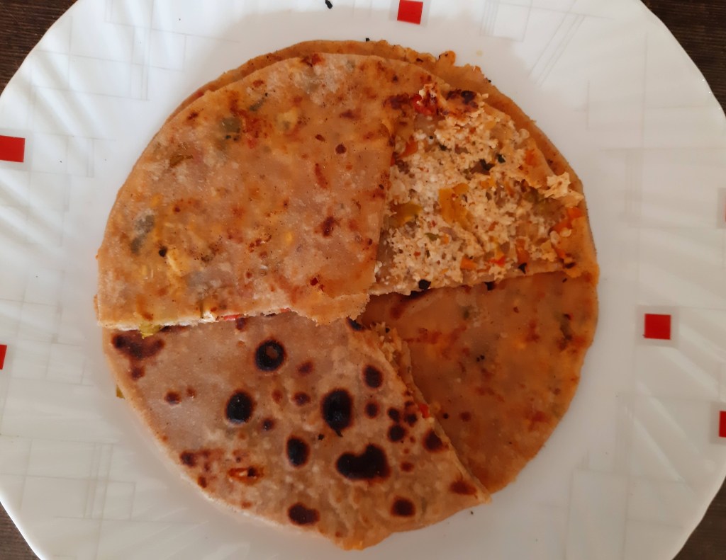 Try this Mix veg paneer stuff paratha. It is the healthiest paratha recipe with protein-packed cottage cheese/paneer and lots of vegetables. I have used onions and bell peppers, but if you like you can add other vegetables too like cabbage, cauliflower, peas, etc.