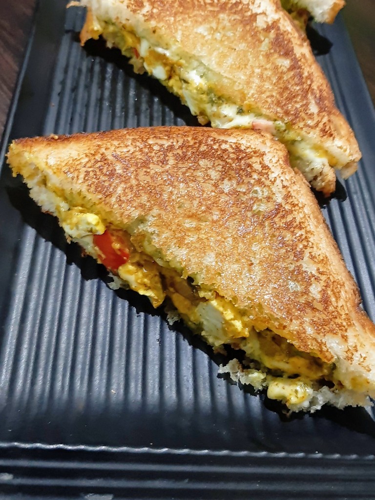 Enjoy the hot, spicy and scrumptious paneer tandoori sandwich as it is or with ketchup or green chutney.