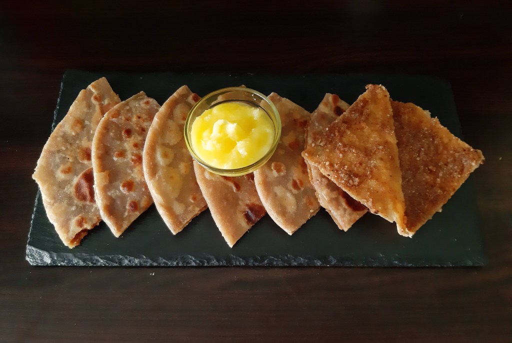 On the occasion of Dussehra, make this mouth-watering and nutrition-packed Gur ka paratha, also known as Gur ki roti or Jaggery stuff paratha. It is found in both Punjabi and Marathi cuisine. But I have prepared it in Maharashtrian style. Made with jaggery, peanuts, sesame seeds and cardamom powder, this Gur paratha is a healthy choice to satiate your dessert craving. Very simple to make.